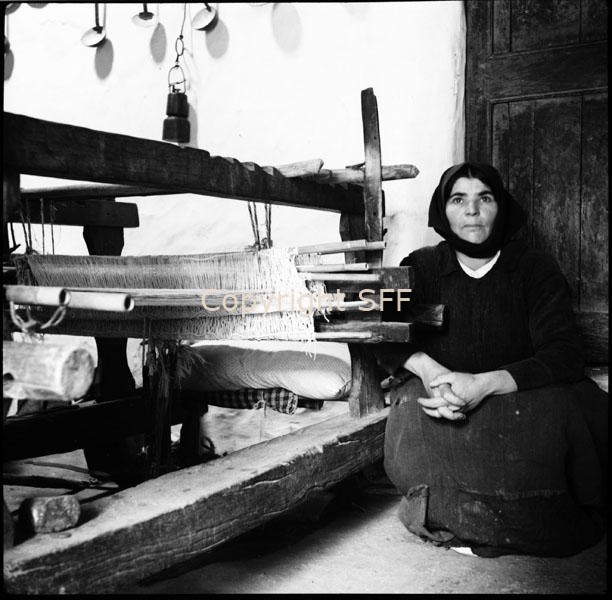 Ritratto di donna accanto a telaio in legno