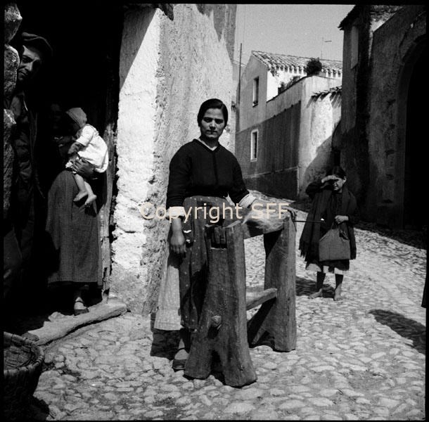 Ritratto di donna accanto a una maciulla