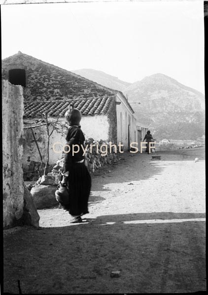 Ritratto di donna che trasporta sulla testa una brocca per la raccolta dell'acqua