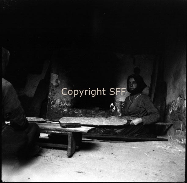 Ritratto di donna con tavola utilizzata per spianare il pane