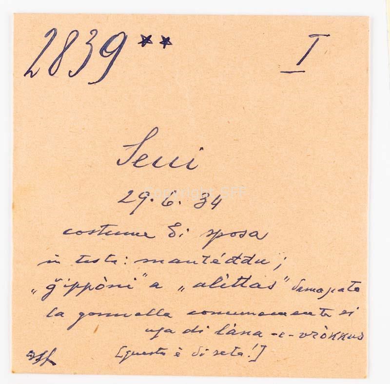 - Abito da sposa: corpetto dell'abito damascato; la gonnella normalmente di lana, in questo caso è di seta