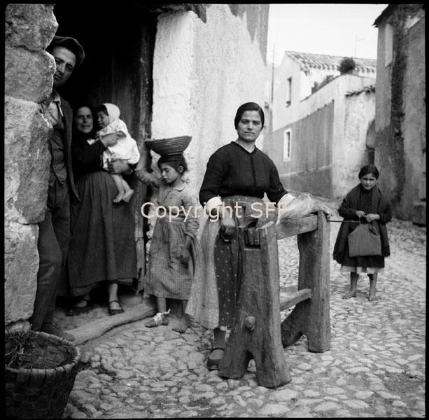 Ritratto di donne e bambine accanto a una maciulla