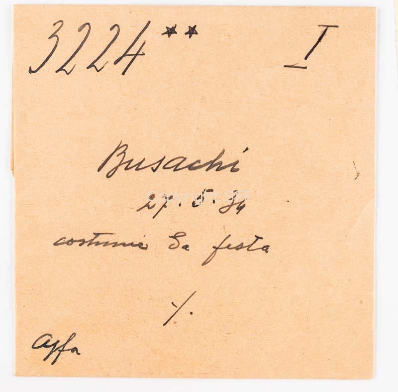- Ritratto di donna che indossa il costume per la festa; gonna pieghettata nera: lutto; gonna pieghettata nera con striscia gialla: ½ lutto; la gonna pieghettata con fascia a colori caratterizza le ragazze giovani. Corsetto (a colori) delle ragazze: vi predomina il rosso come fondo, sopra ci sono decorazioni di stile floreale.