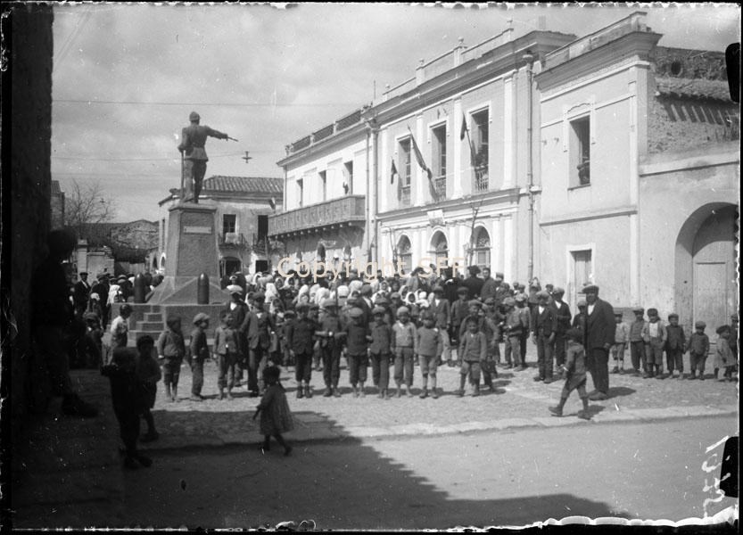 - Ritratto di gruppo davanti al municipio riunitosi per celebrare una festa fascista