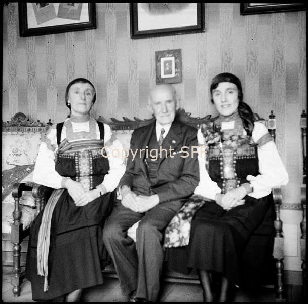 Ritratto di gruppo in un interno: un uomo e due donne in costume