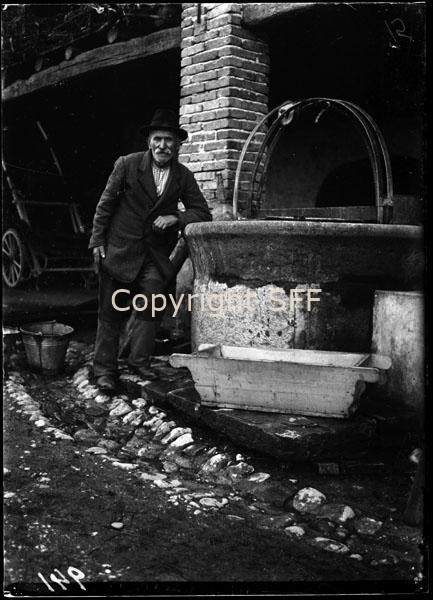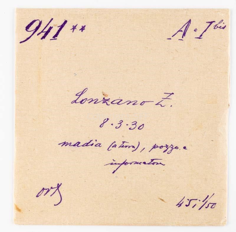 - Ritratto di un informatore a fianco di un pozzo e con a terra una madia: mobile di legno, generalmente a forma di cassone rettangolare, usato tradizionalmente in campagna per impastare il pane, conservare farina, lievito e altri generi alimentari.