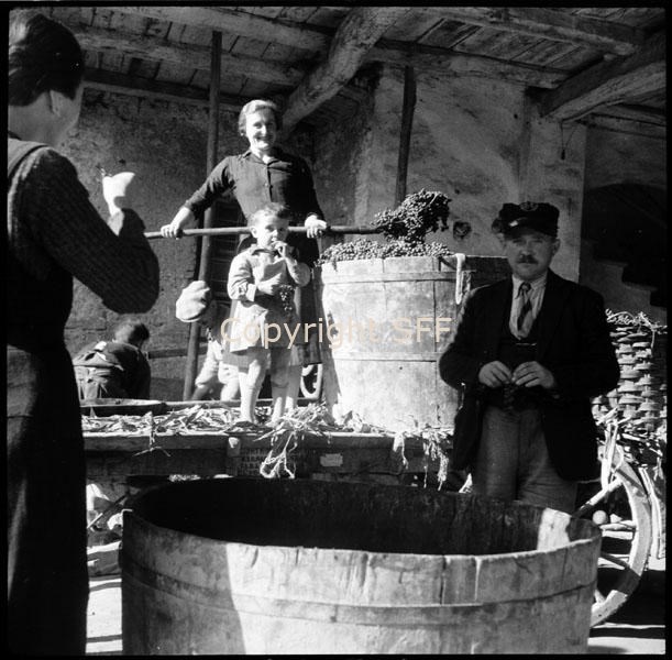 Ritratto di un informatore a Murazzano durante la pigiatura dell'uva