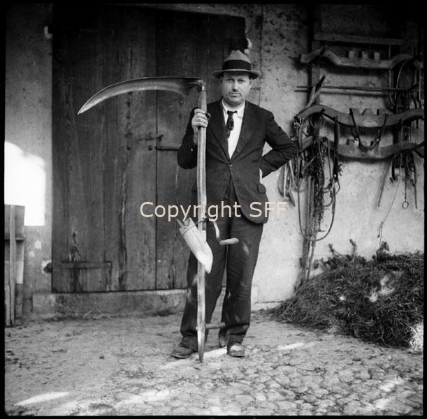 Ritratto di un informatore a Tarzo con una falce fienaia