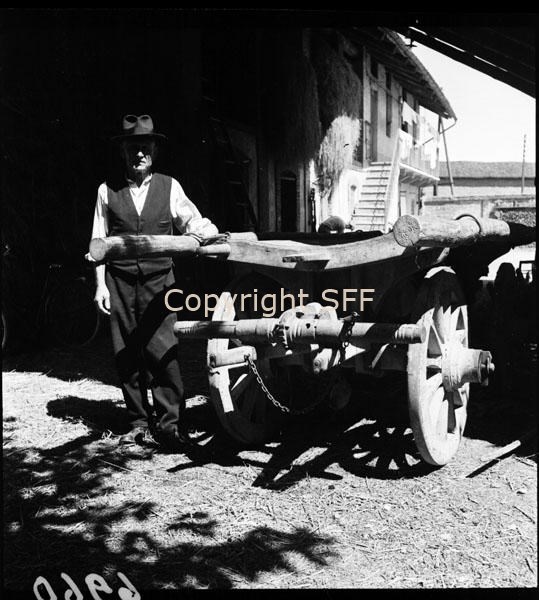 Ritratto di un informatore a Volpiano in posa accanto a un carro
