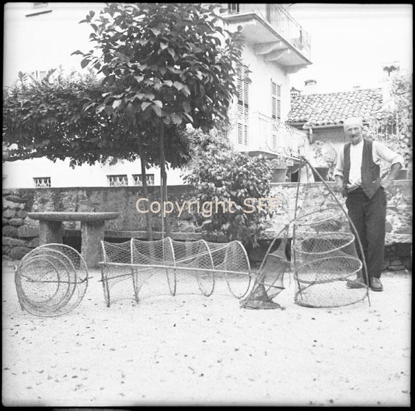 Ritratto di un informatore ad Alzo in posa accanto ad attrezzi da pesca