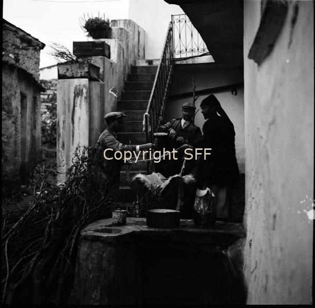 - Ritratto di gruppo di uomini di cui uno indossa il costume locale