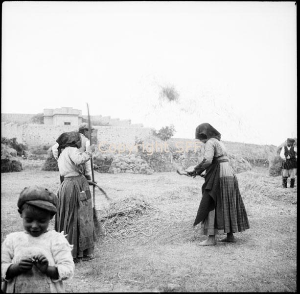 Ritratto di uomo che spula e donna che pulisce il cereale