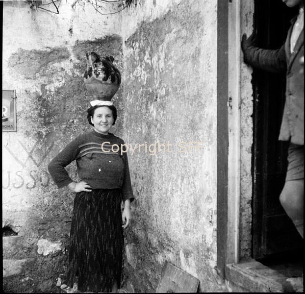 - Ritratto di donna che porta sulla testa una brocca utilizzata per la raccolta e il trasporto dell'acqua