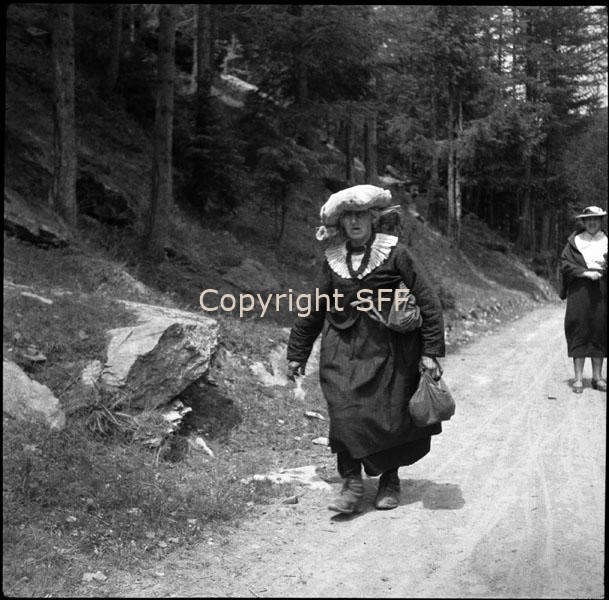 - Ritratto di donna che indossa il costume locale mentre rientra a casa dopo aver fatto acquisti e aver frequentato la messa domenicale