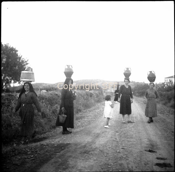 - Ritratto di donne che trasportano sulla testa brocche di diverse dimensioni e forme utilizzate per il trasporto dell'acqua