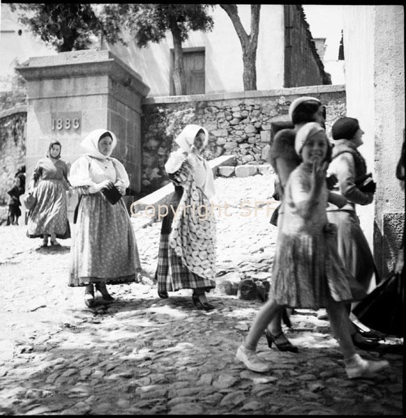 - Ritratto di donne in costume riprese mentre entrano in chiesa per la messa domenicale