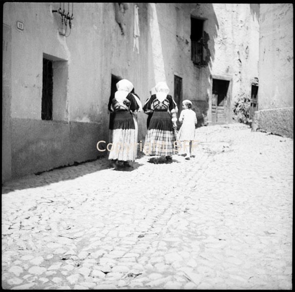 Ritratto di due donne riprese di spalle che indossano il costume locale