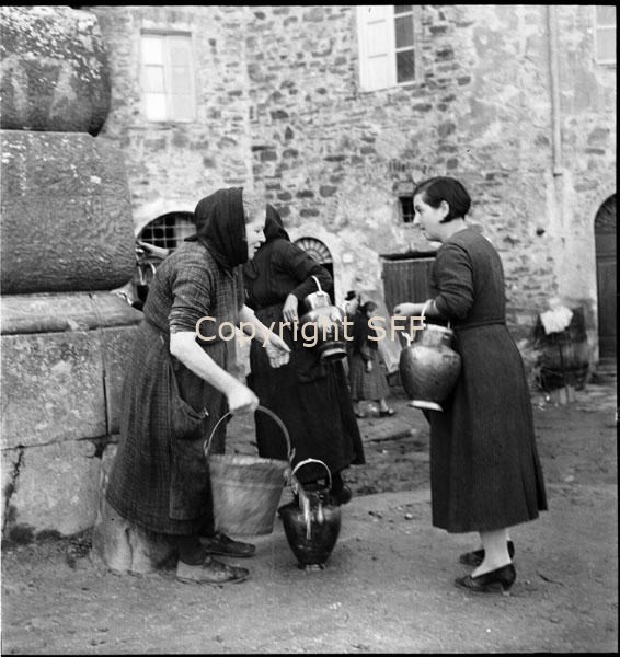 Ritratto di donne con brocche utilizzate per il trasporto e la raccolta dell'acqua all fontana pubblica