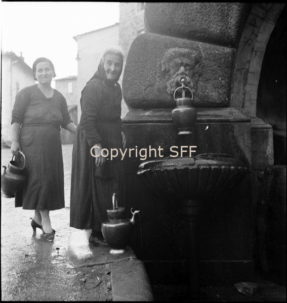 Ritratto di donne con brocche utilizzate per la raccolta e il trasporto dell'acqua dalla fontana pubblica