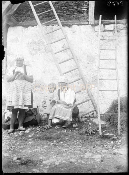 - Ritratto di due donne che indossano il costume di ogni giorno e di una bambina
