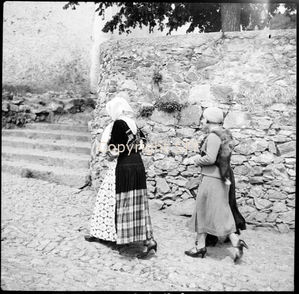 - Ritratto di due donne; una indossa il costume locale, l'altra abiti eleganti per la messa domenicale