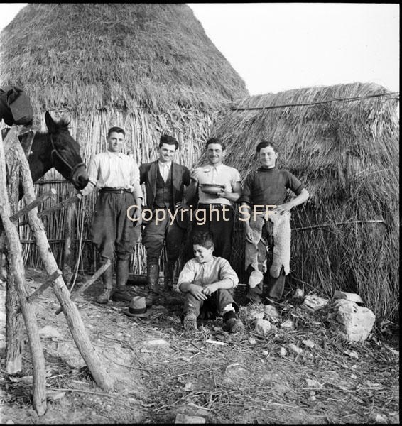 - Ritratto di cinque pastori davanti alla capanna utilizzata come ricovero per uomini e animali