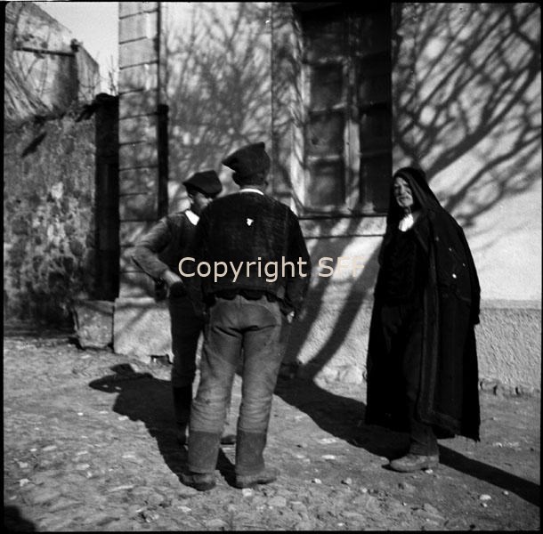 - Ritratto di tre uomini in costume di cui uno indossa un cappotto con guarnizioni ornamentali tipiche del paese