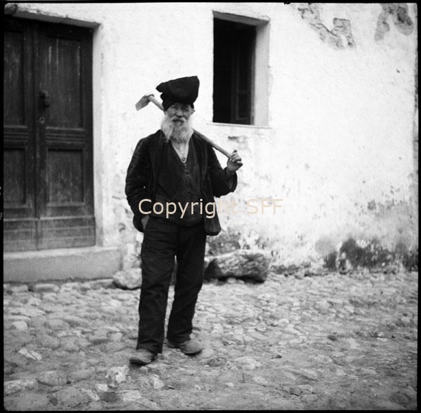 - Ritratto di uomo che indossa il costume locale e che porta una zappa sulle spalle