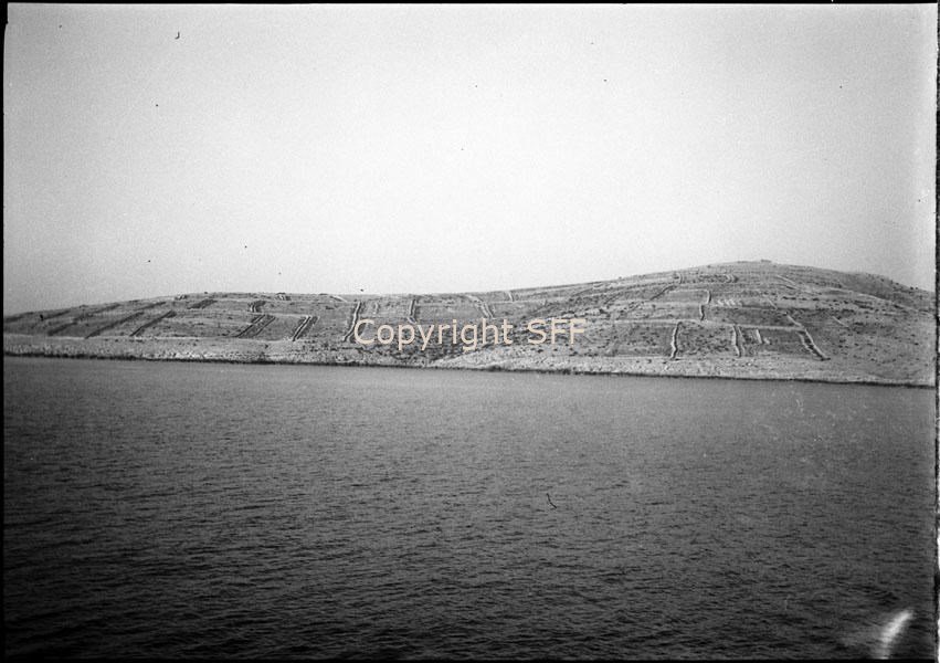 - Veduta del paesaggio carsico circostante la città di Sebenico; sono evidenti gli interventi di terrazzamento sul territorio