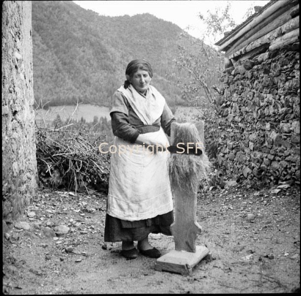 Spatolatura: donna in posa con spatola di ferro