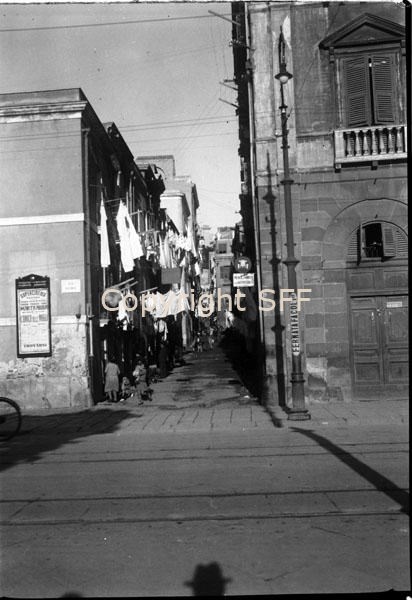 - Veduta di una strada di Cagliari con la biancheria stesa ad asciugare
