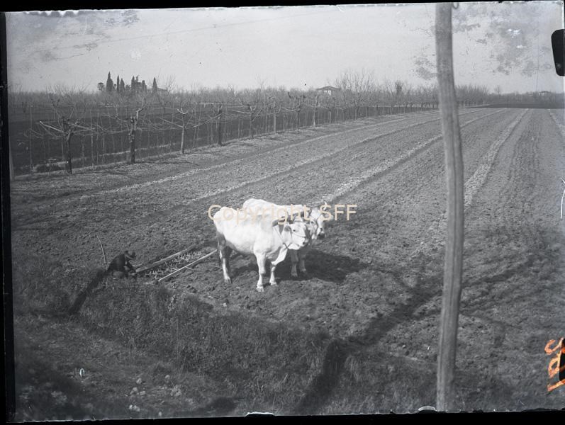 Strumenti del lavoro agricolo - Buoi con arpice - Contadino
