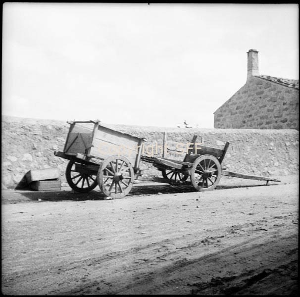 - Carri da carico a due ruote con sponde laterali; uno di essi ha un cassone sul piano di carico