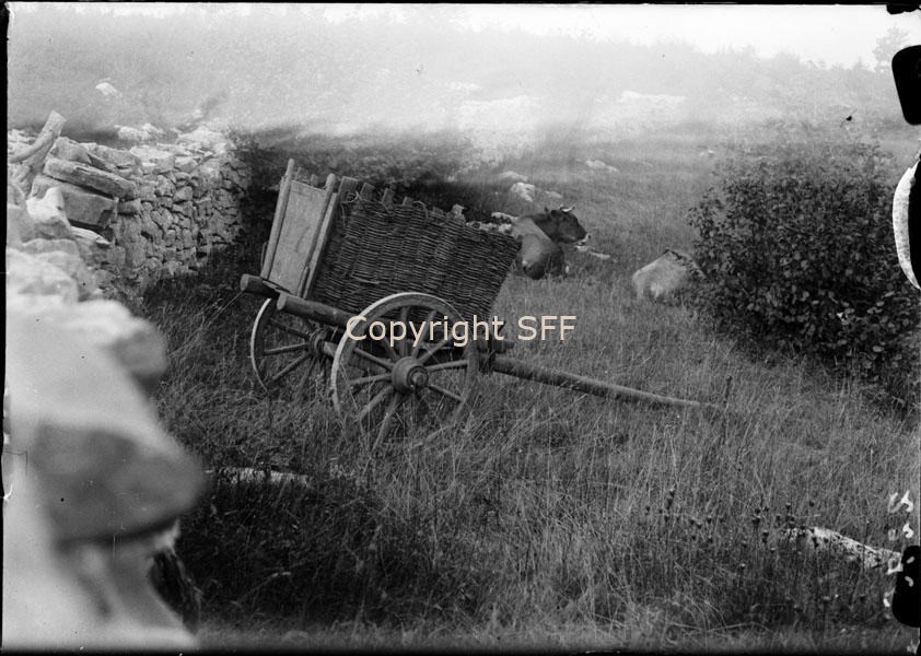 Carro da carico a due ruote con cestone in vimini
