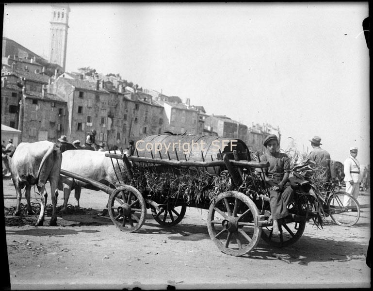 - Carro da carico a quattro ruote con sponde laterali; sul piano di carico trasporta la "castelada": botte per il trasporto delle vinacce