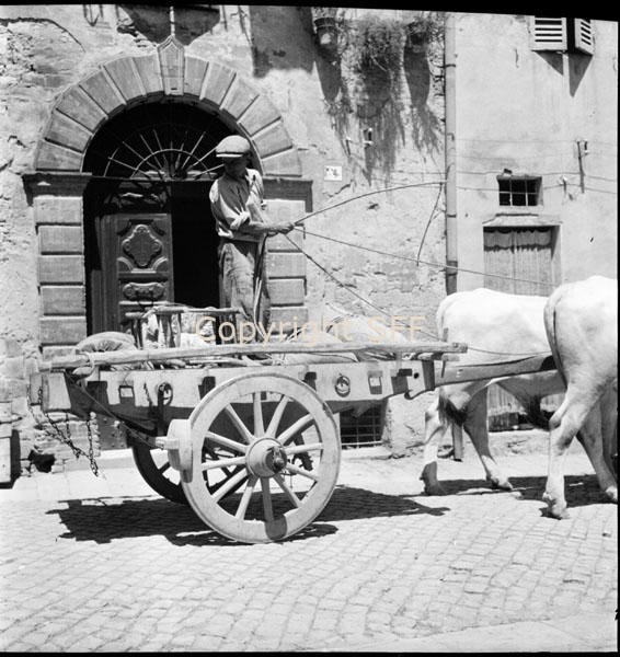 - Carro da carico a due ruote senza sponde laterali; si notino i sostegni al piano di carico