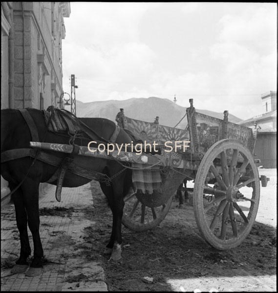 Carro da carico a due ruote con sponde laterali e attacco decorati