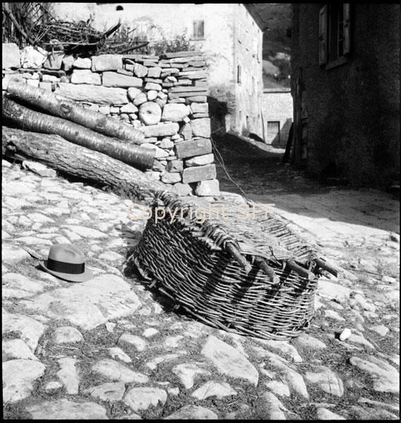 - Cestone in vimini capovolto utilizzato per il trasporto di diversi materiali e montato sul piano di carico dei carri a due e a quattro ruote