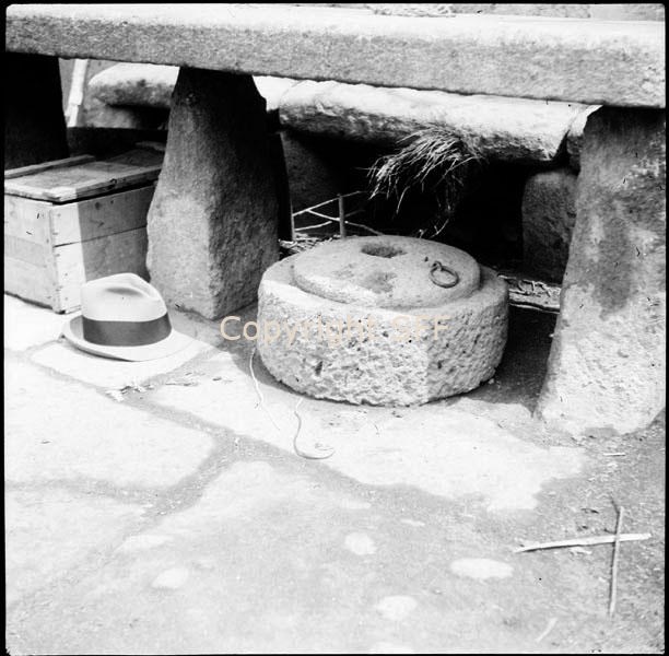 Piccola macina in pietra utilizzata per macinare il farro e il sale