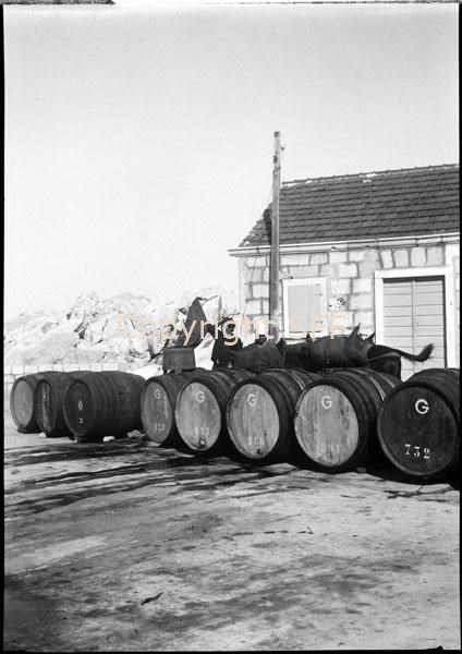 Riversamento del vino contenuto nelle otri attraverso la pevera (grosso imbuto di legno con becco di metallo) nelle botti
