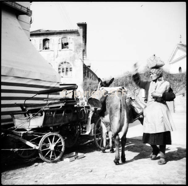 Strumenti del lavoro - Recipienti per latte - Asino - Carro - Cesto - Ritratto - Donna