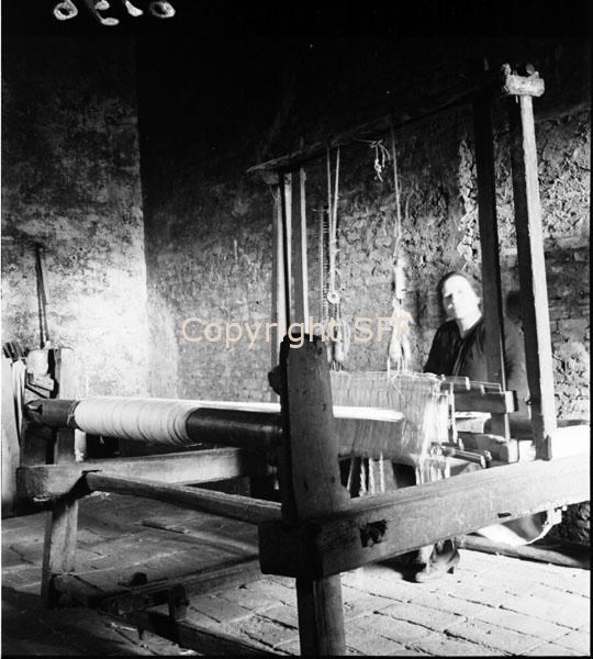 Telaio in legno e ritratto della tessitrice