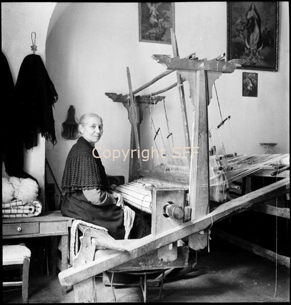 Telaio in legno e ritratto della tessitrice