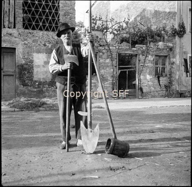 Strumenti del lavoro - Zappa - Badile - Cilindro per letame - Ritratto - Informatore