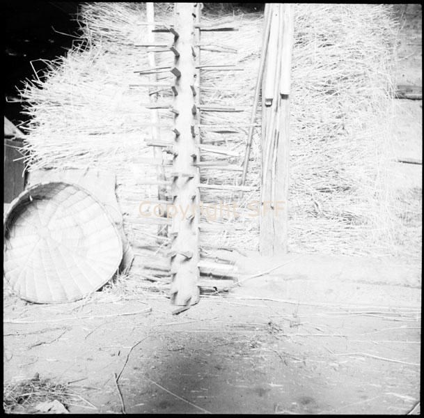 Capisteo; strumento in legno utilizzato per la conservazione del pane e ancora a destra correggiati