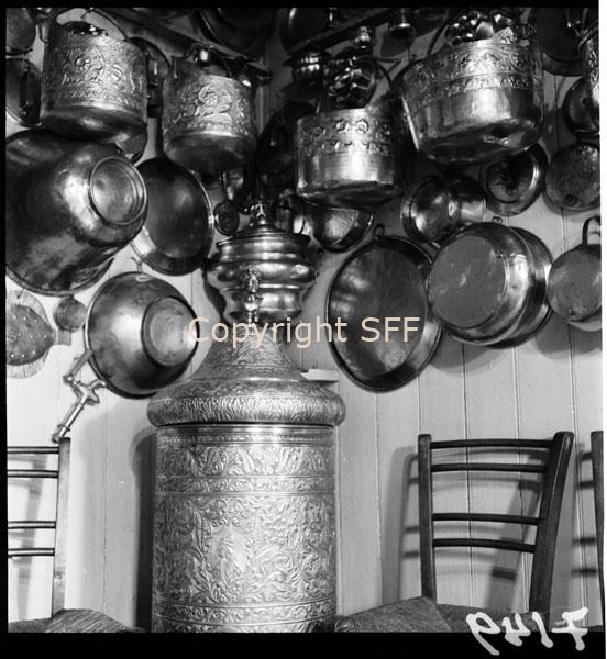 Stufa, catini e secchi di rame