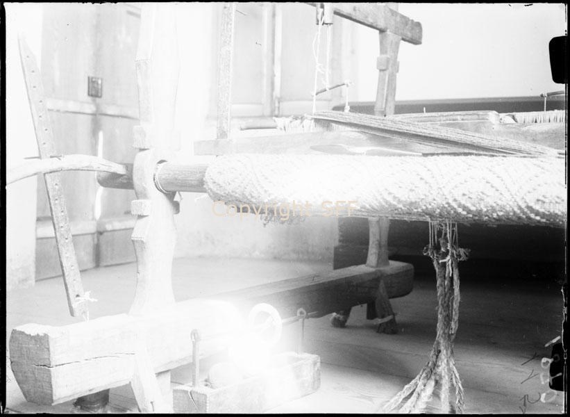 - Telaio in legno composto da alcuni elementi: la spola per la lana (60 cm); la carrucola: ("konğò");