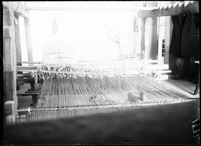 - Telaio in legno; particolare dei licci: elementi dei telai per tessitura, la cui funzione consiste nell’innalzare o abbassare i fili dell’ordito per consentire il passaggio della navetta che porta la trama