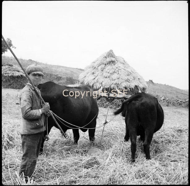 Trebbiatura mediante l'utilizzo dei buoi e della pietra da trebbia