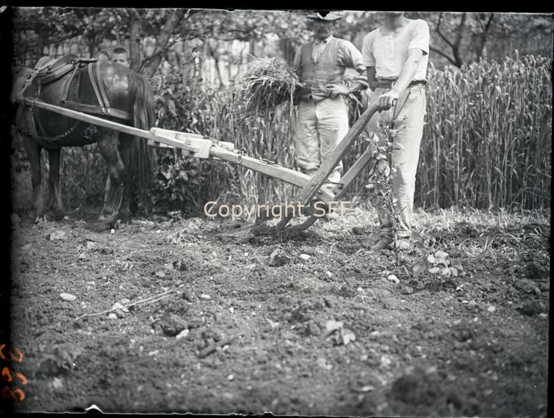 Uomini al lavoro con un aratro